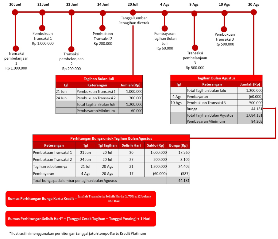 *Ilustrasi ini menggunakan perhitungan tanggal jatuh tempo Kartu Kredit Platinum